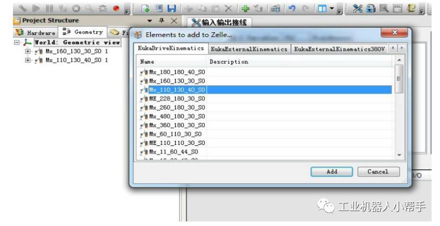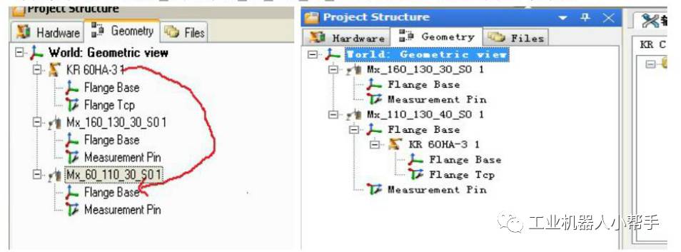 旋轉軸配置和上面步驟基本相同,不同的是配置旋轉軸不用添加完后把KR60HA_3拖拽到Mx_110_130_40_S0的FLANGE BASE下面