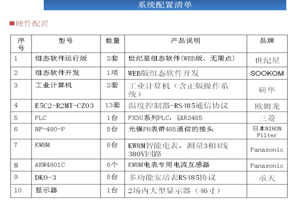 系統(tǒng)說(shuō)明 l1.RS485總線來(lái)采集設(shè)備的各種參數(shù)。通過(guò)PLC與設(shè)備上的溫控表、PH值表、傳感器等以通信、 l2.使用工控組態(tài)軟件來(lái)存儲(chǔ)記錄PLC中采集的各種設(shè)備參數(shù)。 l3.使用KW8M 采集電流、電壓數(shù)據(jù)通過(guò)RS485通信。 l4.世紀(jì)星監(jiān)控系統(tǒng)控制策略的創(chuàng)建是在策略編輯器中實(shí)現(xiàn)的,策略編輯器是一個(gè)基于圖標(biāo),即功能模塊的設(shè)計(jì)環(huán)境.結(jié)合策略工具箱中的功能模塊及其相應(yīng)的參數(shù)配置對(duì)話框開(kāi)發(fā)策略與配置工作.通過(guò)RS485總線通信采集數(shù)據(jù)連接功能塊。功能模塊也稱(chēng)為軟儀表,其功能與人們熟悉的模擬儀表相同,能完成現(xiàn)場(chǎng)數(shù)據(jù)的采集、處理、顯示、報(bào)警和控制等(如溫度、電流、電壓、PH值、I/O狀態(tài)).構(gòu)建控制策略時(shí),用連線將策略所需的功能模塊連接起來(lái). l5.采集的記錄報(bào)表數(shù)據(jù)發(fā)送到局域網(wǎng)外遠(yuǎn)端,在遠(yuǎn)端也能進(jìn)行數(shù)據(jù)分析。